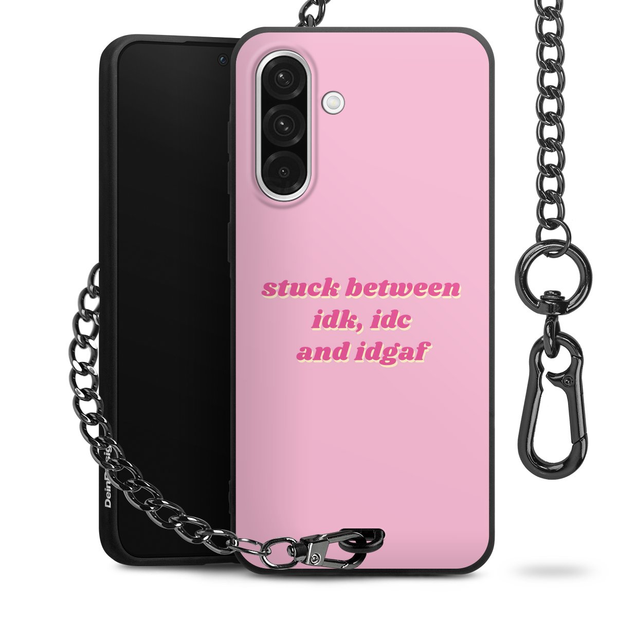 - Mattschwarze Handyhülle mit Metallkette