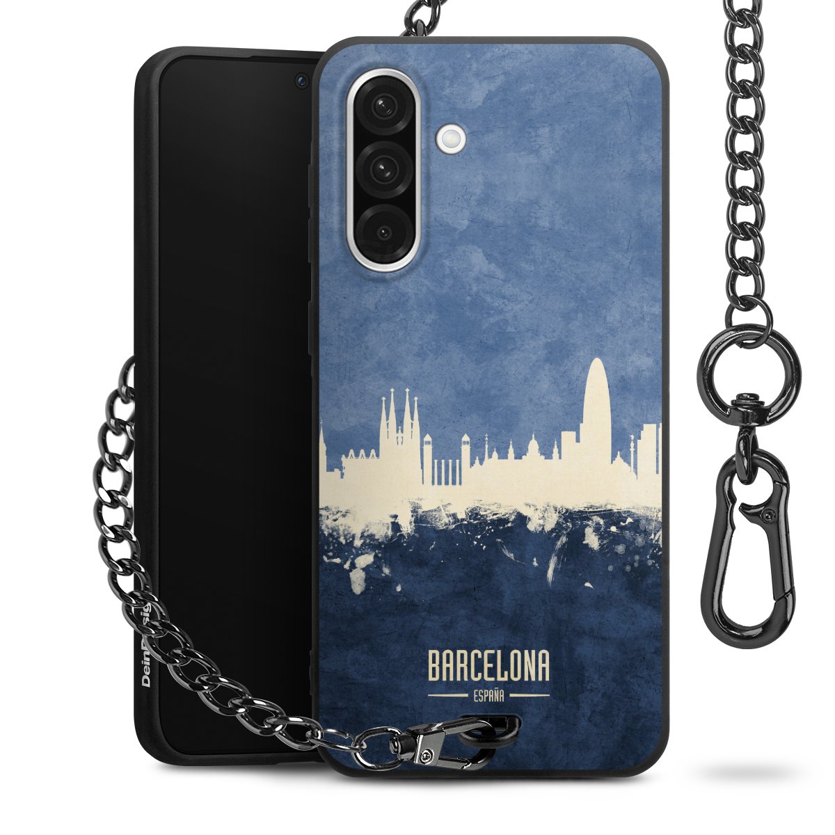 • Mattschwarze Handyhülle mit Metallkette