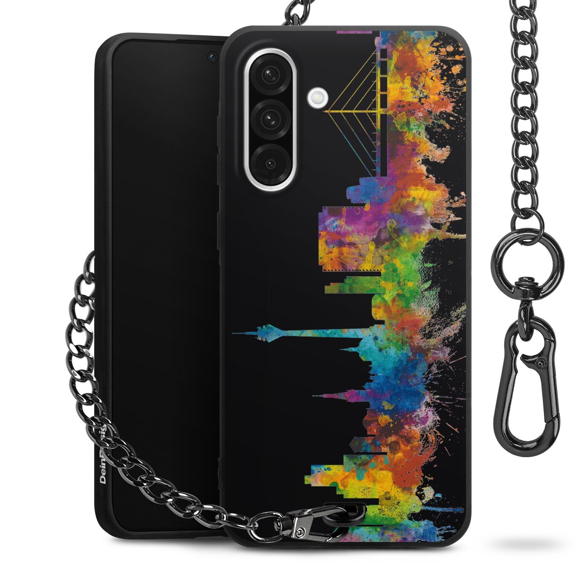 Die mattschwarze Silikon-Handyhülle besteht aus robustem TPU (thermoplastisches Polyurethan). Sie ist flexibel und schützt Dein Smartphone vor Stößen und Kratzern. Die Kette sowie der Karabinerhaken sind aus Metall in Gunmetal-Optik gefertigt. Für dieses Produkt kommen ausschließlich TÜV-geprüfte Materialien zum Einsatz.