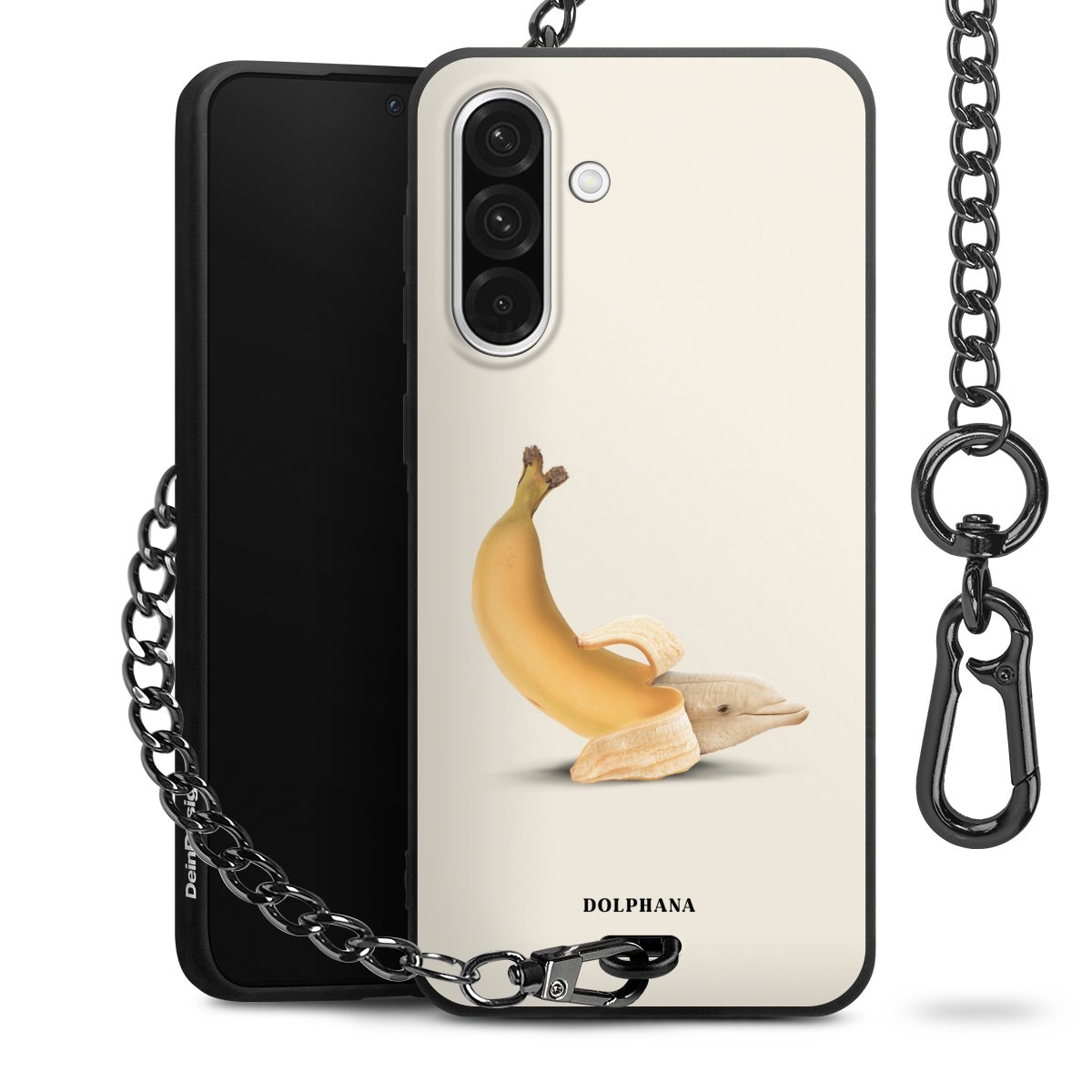 • Mattschwarze Handyhülle mit Metallkette