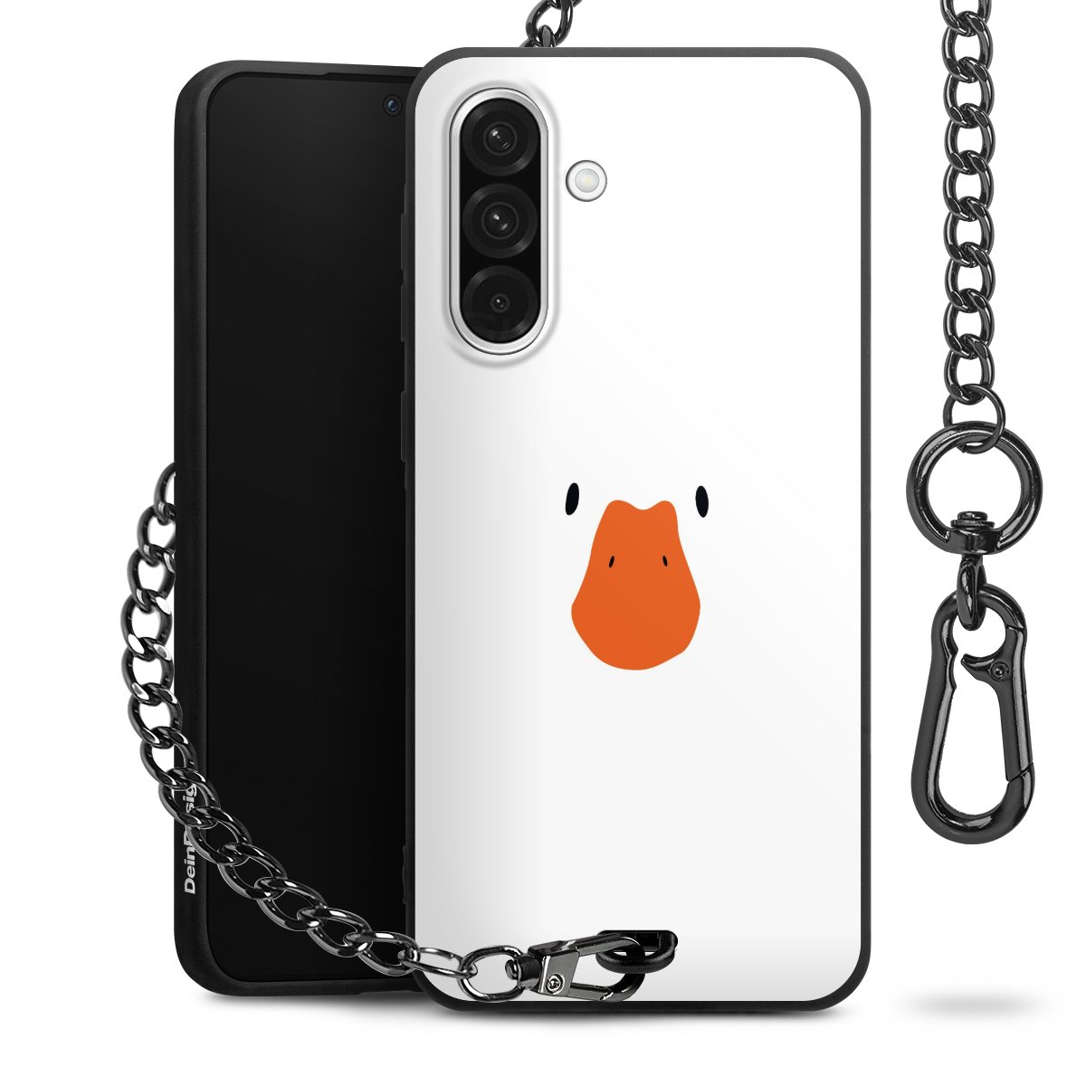 - Mattschwarze Handyhülle mit Metallkette