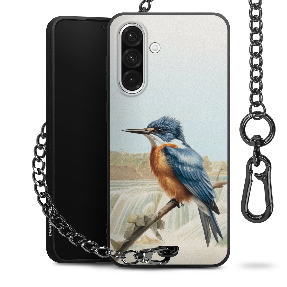 • Mattschwarze Handyhülle mit Metallkette