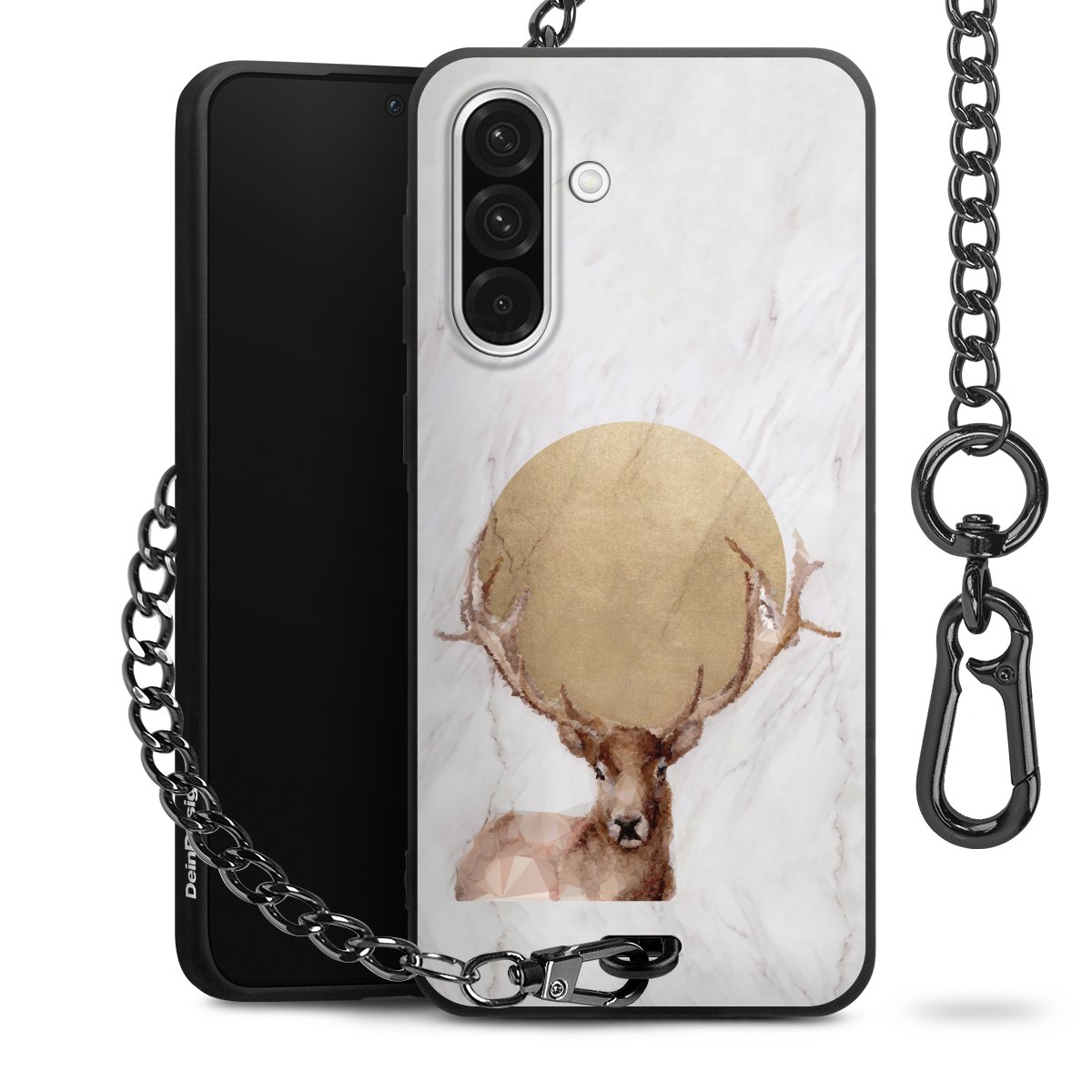 • Mattschwarze Handyhülle mit Metallkette