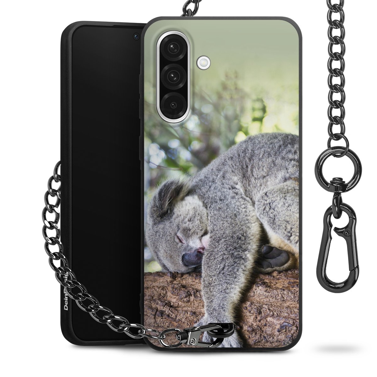 • Mattschwarze Handyhülle mit Metallkette