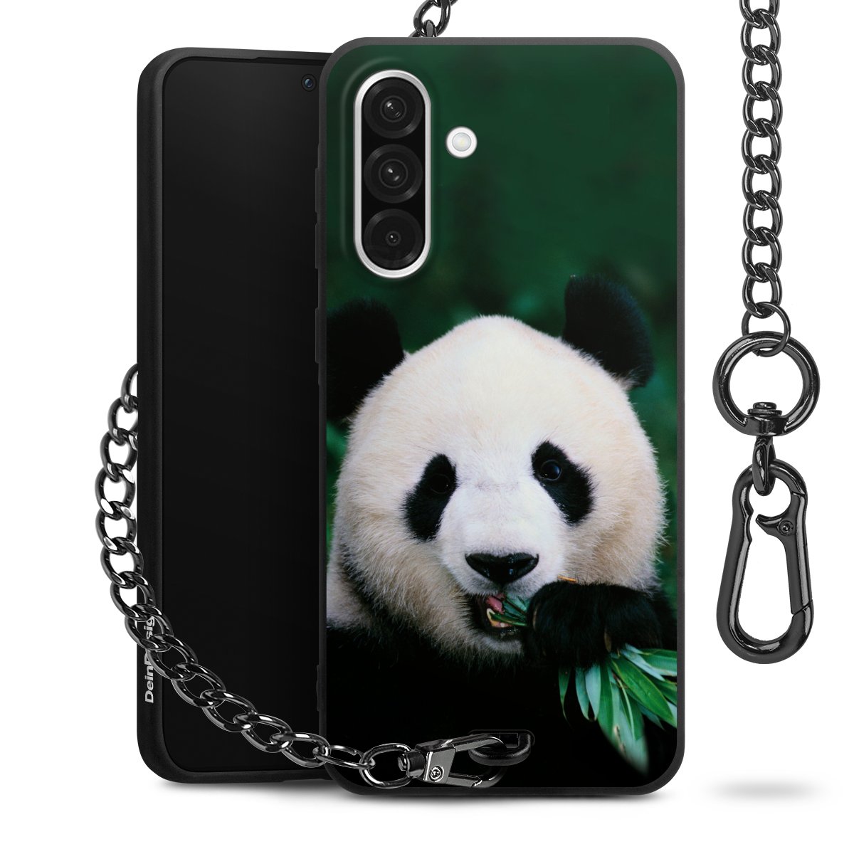 - Mattschwarze Handyhülle mit Metallkette