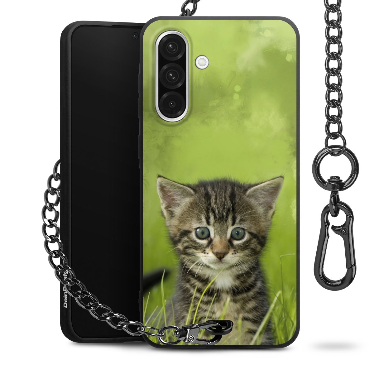 - Mattschwarze Handyhülle mit Metallkette
