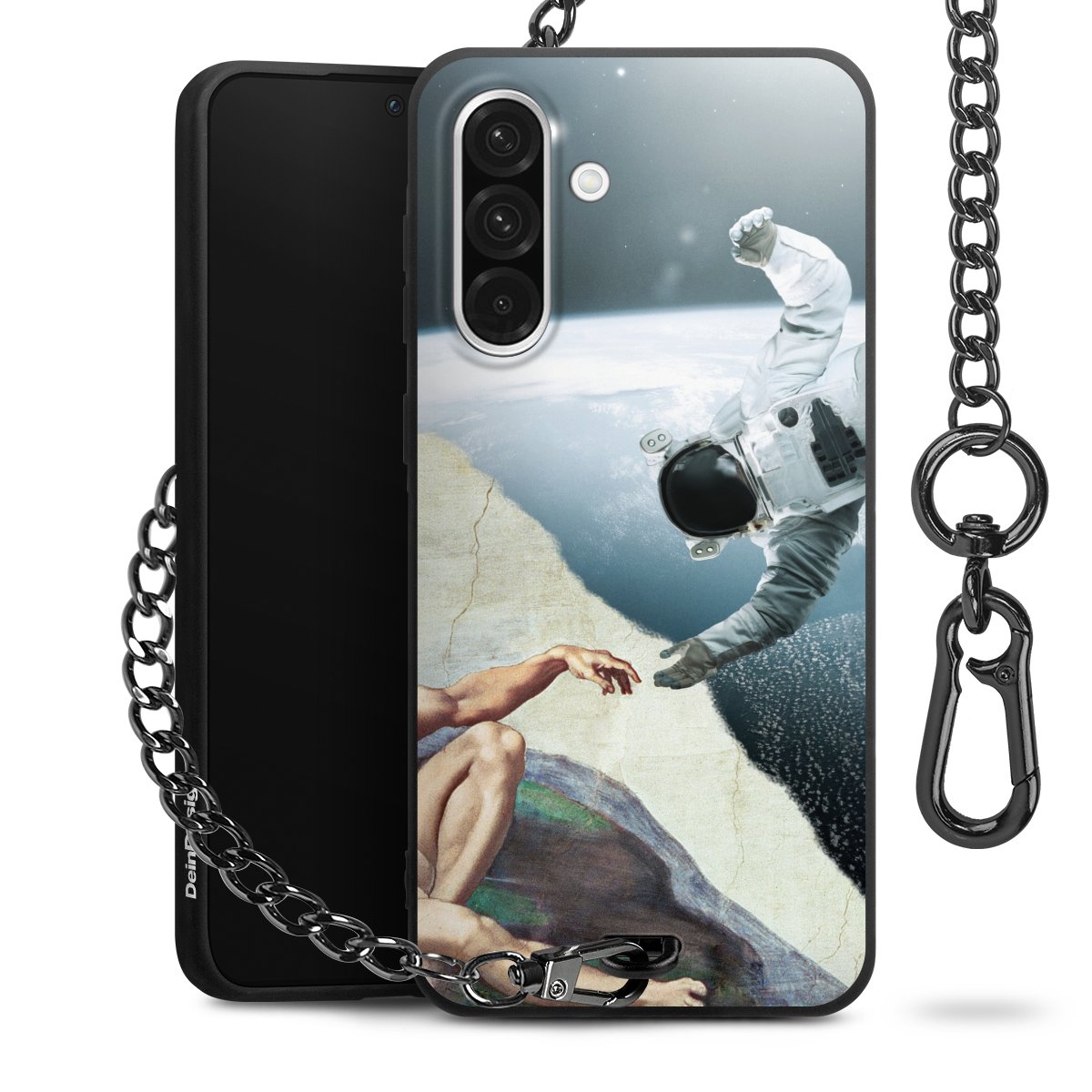 - Mattschwarze Handyhülle mit Metallkette