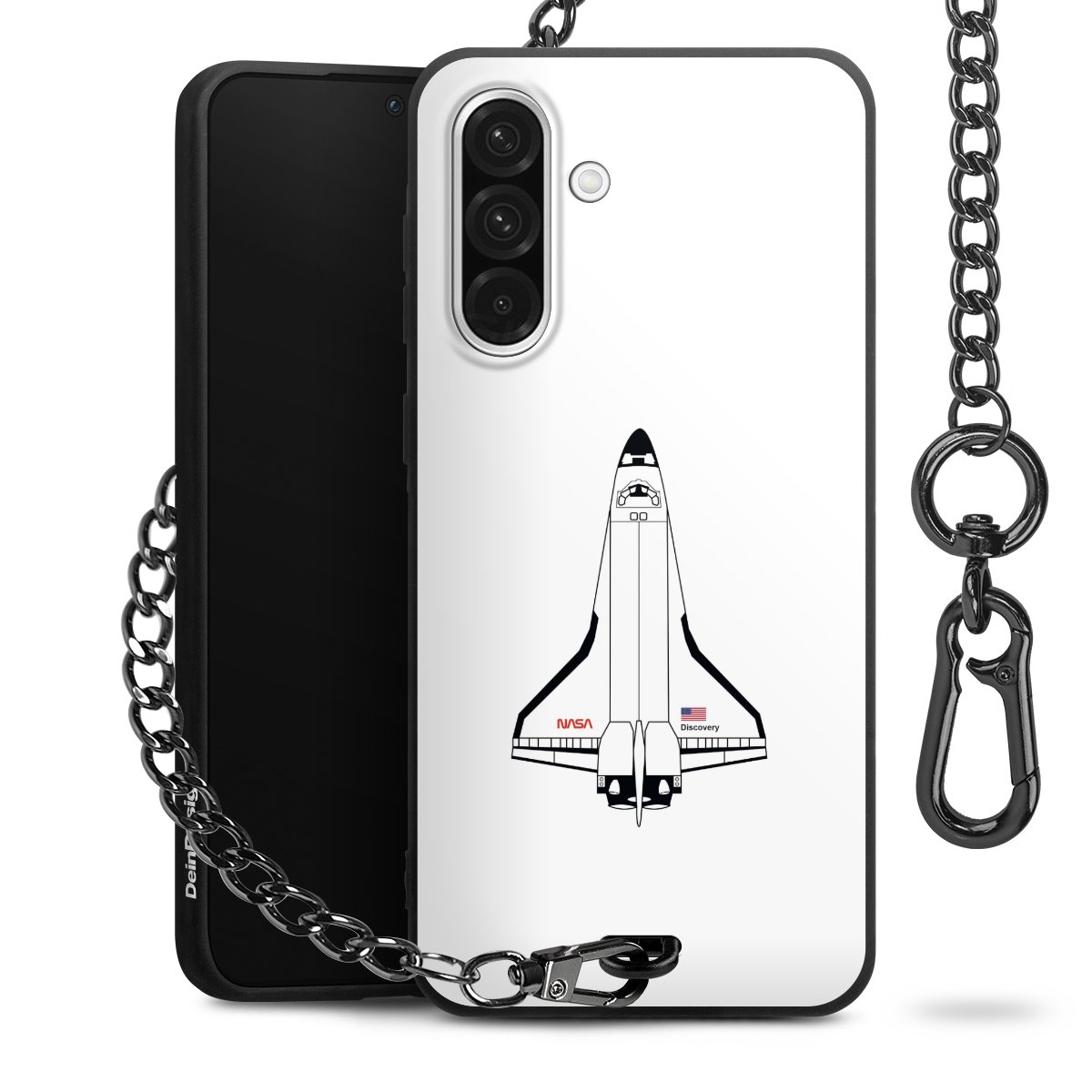 - Mattschwarze Handyhülle mit Metallkette