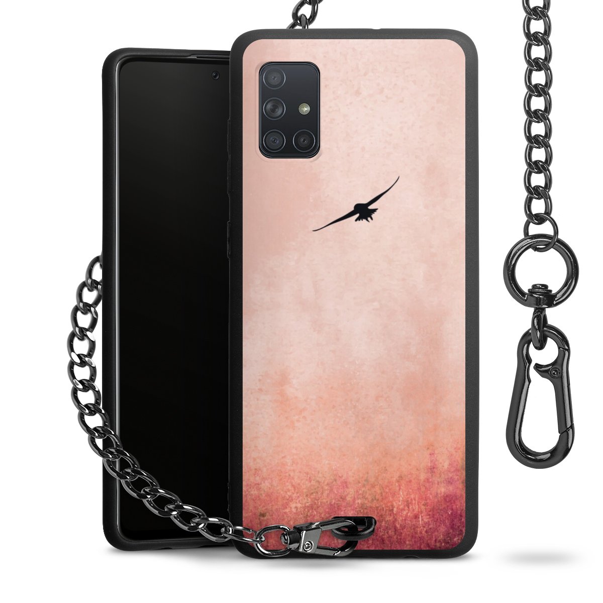 Die mattschwarze Silikon-Handyhülle besteht aus robustem TPU (thermoplastisches Polyurethan). Sie ist flexibel und schützt Dein Smartphone vor Stößen und Kratzern. Die Kette sowie der Karabinerhaken sind aus Metall in Gunmetal-Optik gefertigt. Für dieses Produkt kommen ausschließlich TÜV-geprüfte Materialien zum Einsatz.