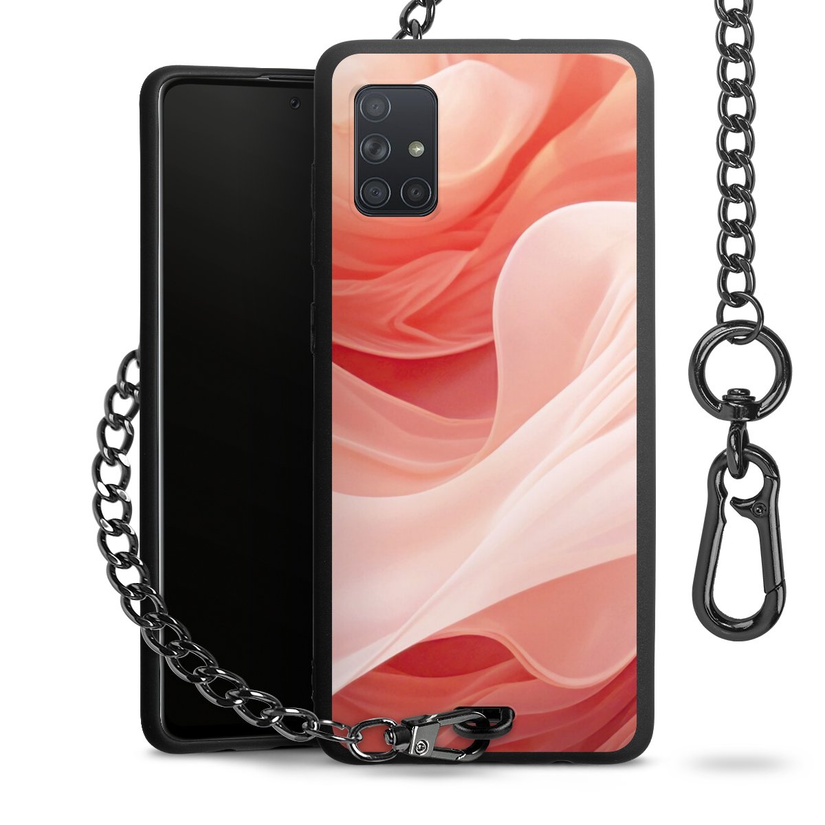 Die mattschwarze Silikon-Handyhülle besteht aus robustem TPU (thermoplastisches Polyurethan). Sie ist flexibel und schützt Dein Smartphone vor Stößen und Kratzern. Die Kette sowie der Karabinerhaken sind aus Metall in Gunmetal-Optik gefertigt. Für dieses Produkt kommen ausschließlich TÜV-geprüfte Materialien zum Einsatz.