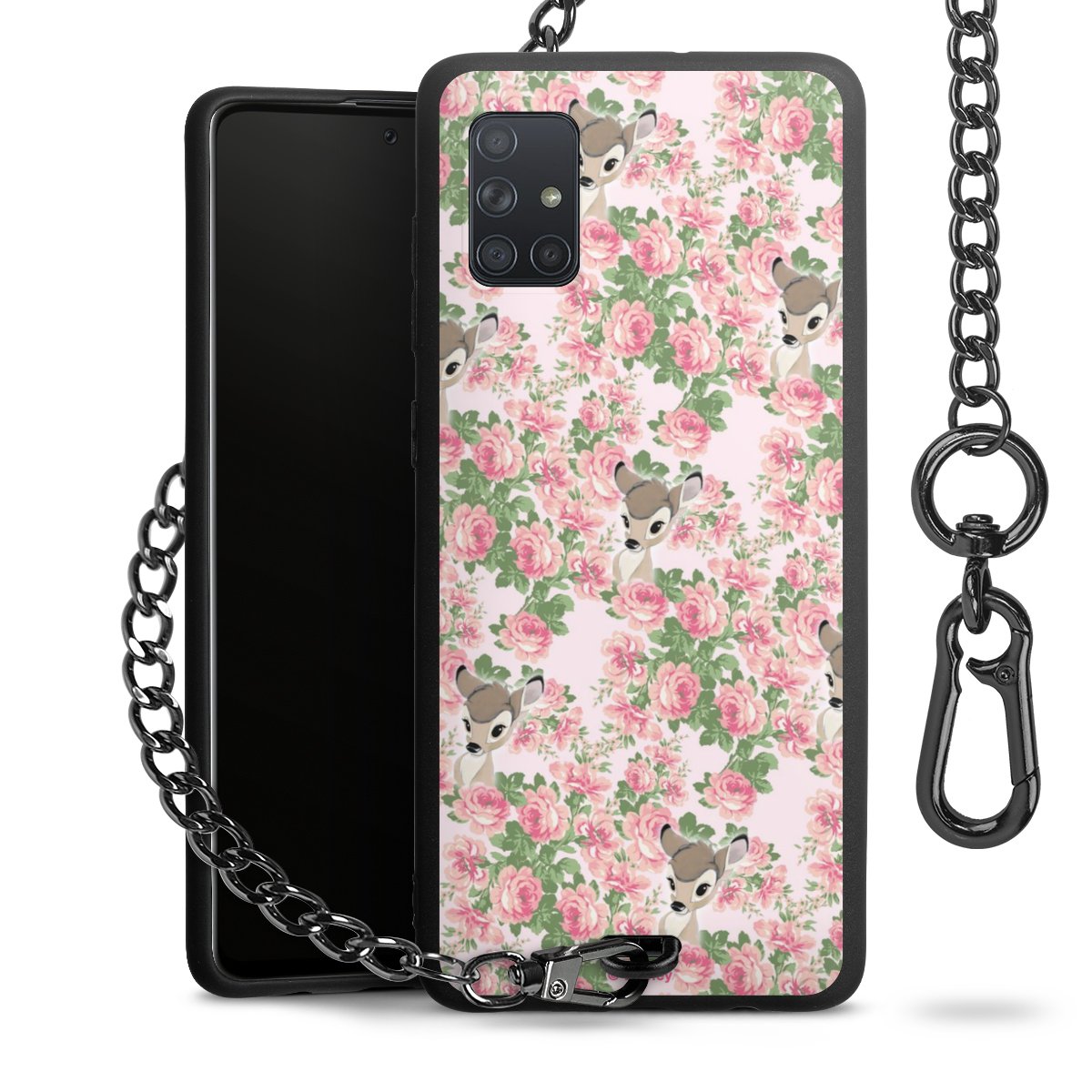 Die Handyhülle verfügt über eine mittig am unteren Rand platzierte Öse, an der die Metallkette stabil befestigt ist. Bestelle die Hülle einfach für Dein Smartphone-Modell, dann passt sie wie angegossen und Du brauchst sie bloß einmal anzudrücken. Handy in die Tasche, Karabiner an den Hosenbund – schon kann die Party starten.