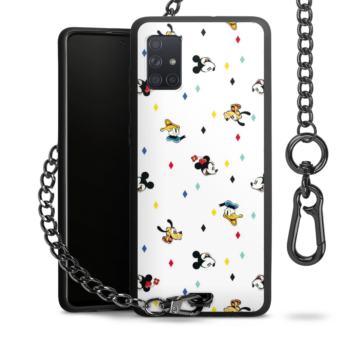Die Handyhülle verfügt über eine mittig am unteren Rand platzierte Öse, an der die Metallkette stabil befestigt ist. Bestelle die Hülle einfach für Dein Smartphone-Modell, dann passt sie wie angegossen und Du brauchst sie bloß einmal anzudrücken. Handy in die Tasche, Karabiner an den Hosenbund – schon kann die Party starten.