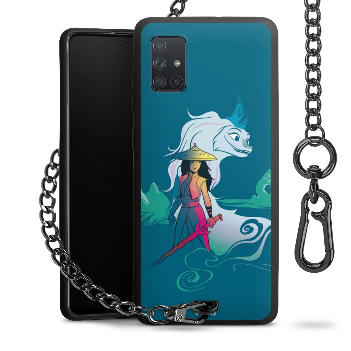 • Mattschwarze Handyhülle mit Metallkette