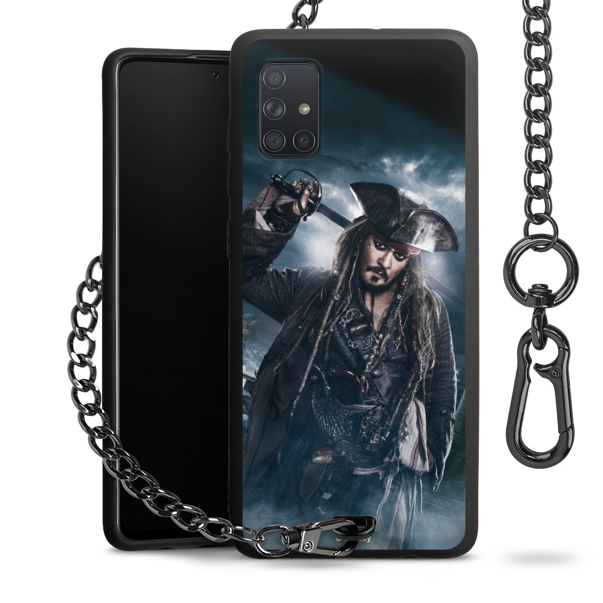 • Mattschwarze Handyhülle mit Metallkette
