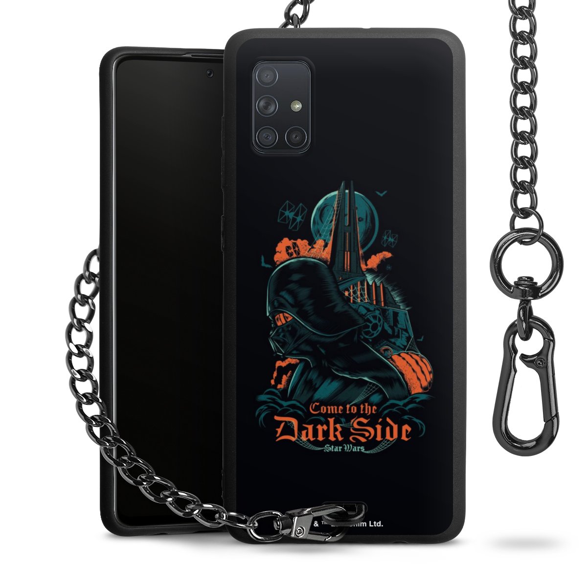 Die mattschwarze Silikon-Handyhülle besteht aus robustem TPU (thermoplastisches Polyurethan). Sie ist flexibel und schützt Dein Smartphone vor Stößen und Kratzern. Die Kette sowie der Karabinerhaken sind aus Metall in Gunmetal-Optik gefertigt. Für dieses Produkt kommen ausschließlich TÜV-geprüfte Materialien zum Einsatz.