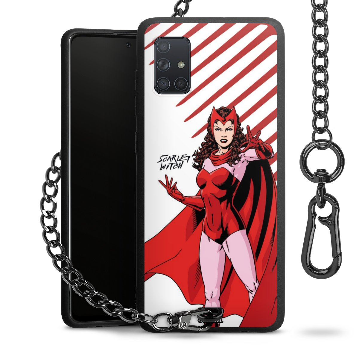 Die Handyhülle verfügt über eine mittig am unteren Rand platzierte Öse, an der die Metallkette stabil befestigt ist. Bestelle die Hülle einfach für Dein Smartphone-Modell, dann passt sie wie angegossen und Du brauchst sie bloß einmal anzudrücken. Handy in die Tasche, Karabiner an den Hosenbund – schon kann die Party starten.