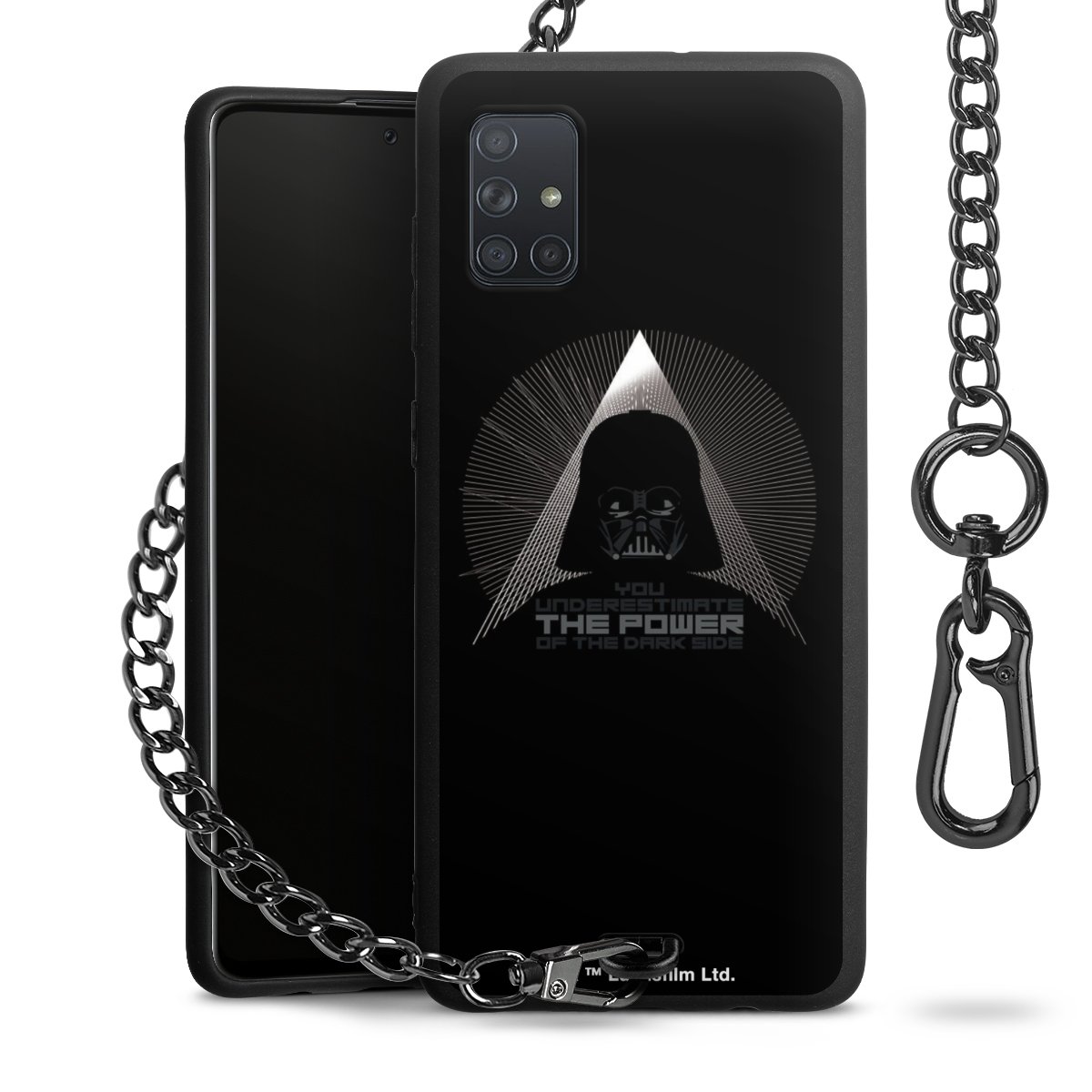 Die mattschwarze Silikon-Handyhülle besteht aus robustem TPU (thermoplastisches Polyurethan). Sie ist flexibel und schützt Dein Smartphone vor Stößen und Kratzern. Die Kette sowie der Karabinerhaken sind aus Metall in Gunmetal-Optik gefertigt. Für dieses Produkt kommen ausschließlich TÜV-geprüfte Materialien zum Einsatz.