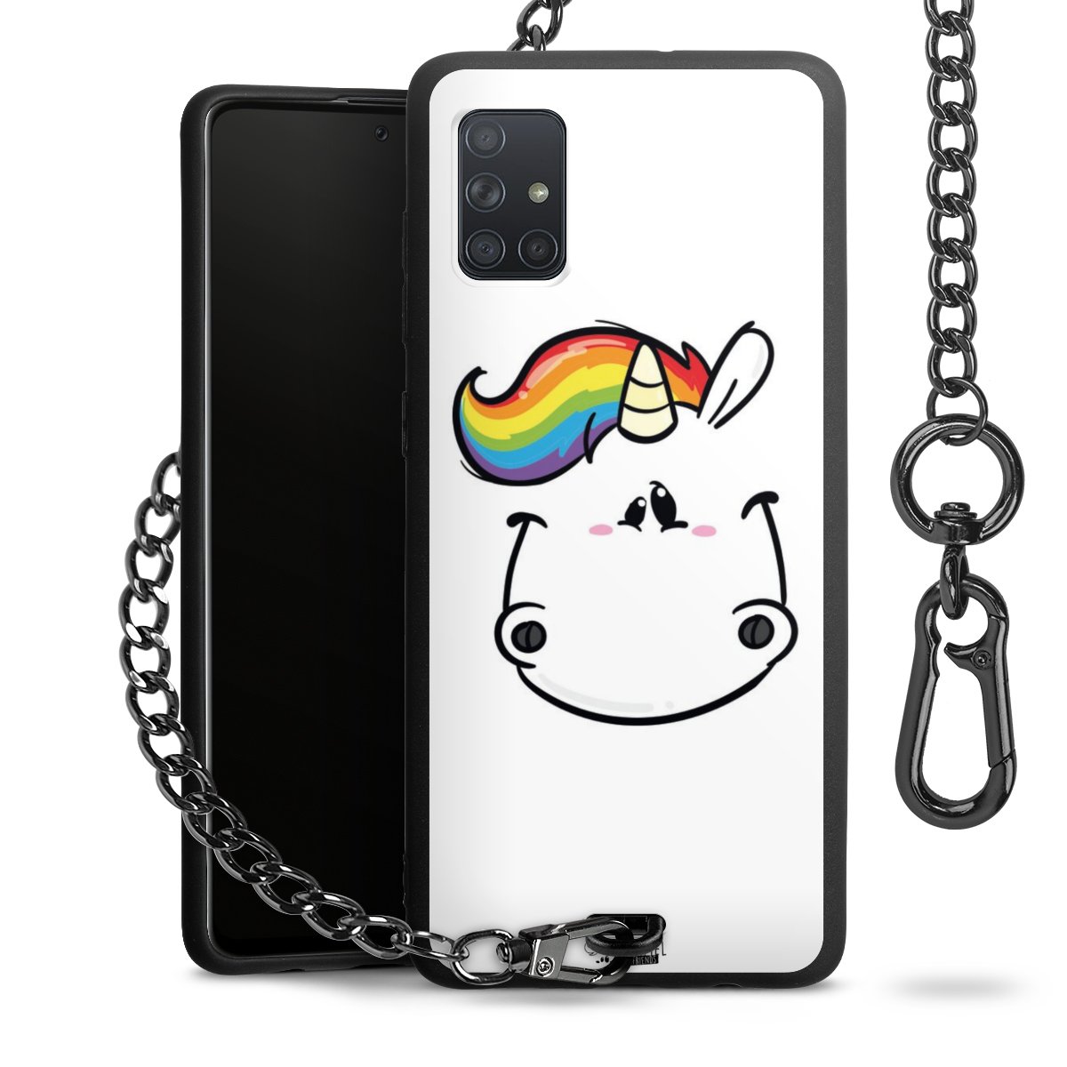 Die mattschwarze Silikon-Handyhülle besteht aus robustem TPU (thermoplastisches Polyurethan). Sie ist flexibel und schützt Dein Smartphone vor Stößen und Kratzern. Die Kette sowie der Karabinerhaken sind aus Metall in Gunmetal-Optik gefertigt. Für dieses Produkt kommen ausschließlich TÜV-geprüfte Materialien zum Einsatz.