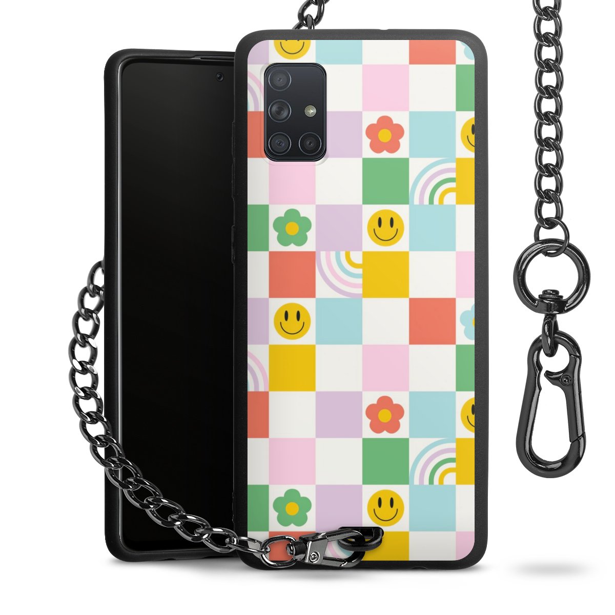 Die mattschwarze Silikon-Handyhülle besteht aus robustem TPU (thermoplastisches Polyurethan). Sie ist flexibel und schützt Dein Smartphone vor Stößen und Kratzern. Die Kette sowie der Karabinerhaken sind aus Metall in Gunmetal-Optik gefertigt. Für dieses Produkt kommen ausschließlich TÜV-geprüfte Materialien zum Einsatz.