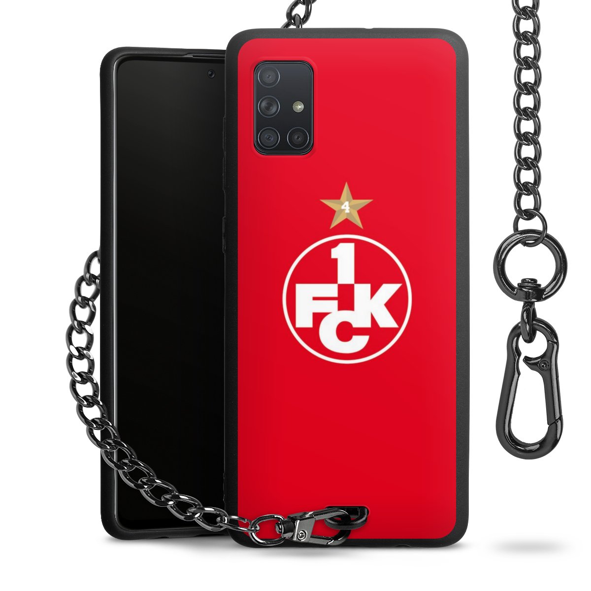 Die Handyhülle verfügt über eine mittig am unteren Rand platzierte Öse, an der die Metallkette stabil befestigt ist. Bestelle die Hülle einfach für Dein Smartphone-Modell, dann passt sie wie angegossen und Du brauchst sie bloß einmal anzudrücken. Handy in die Tasche, Karabiner an den Hosenbund – schon kann die Party starten.