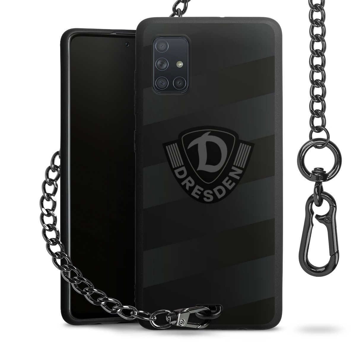 Die mattschwarze Silikon-Handyhülle besteht aus robustem TPU (thermoplastisches Polyurethan). Sie ist flexibel und schützt Dein Smartphone vor Stößen und Kratzern. Die Kette sowie der Karabinerhaken sind aus Metall in Gunmetal-Optik gefertigt. Für dieses Produkt kommen ausschließlich TÜV-geprüfte Materialien zum Einsatz.