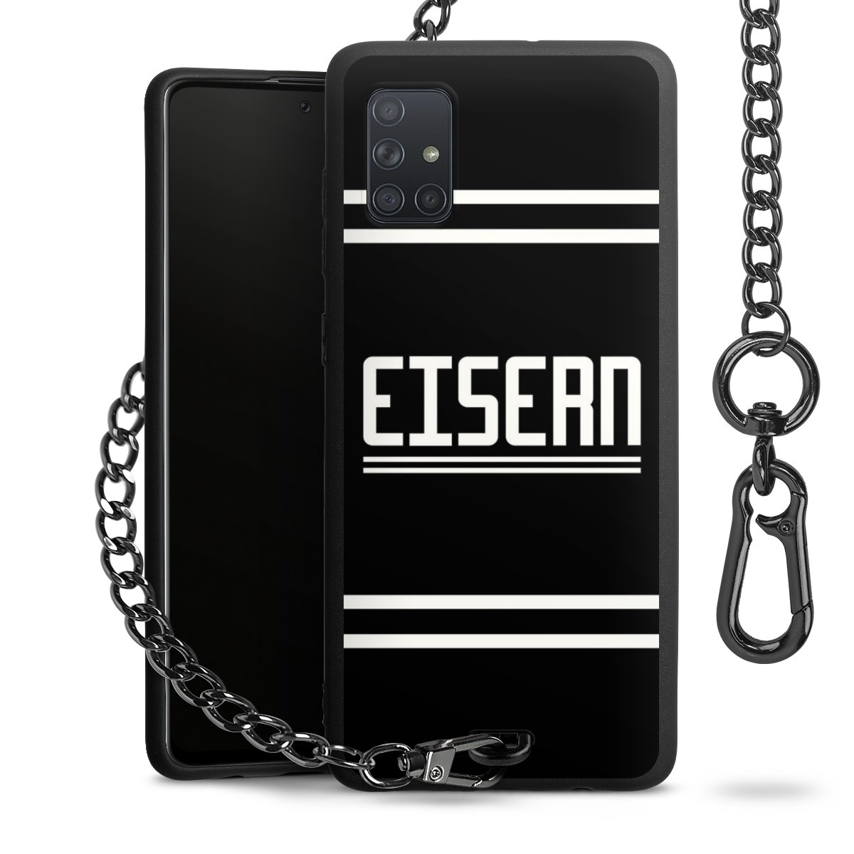 • Mattschwarze Handyhülle mit Metallkette