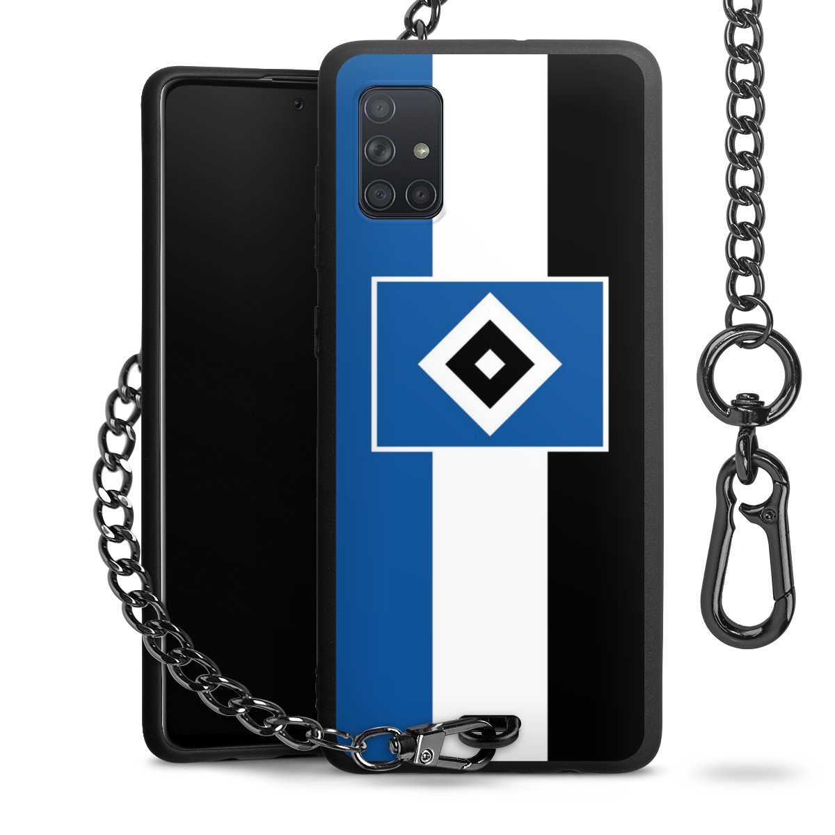Die mattschwarze Silikon-Handyhülle besteht aus robustem TPU (thermoplastisches Polyurethan). Sie ist flexibel und schützt Dein Smartphone vor Stößen und Kratzern. Die Kette sowie der Karabinerhaken sind aus Metall in Gunmetal-Optik gefertigt. Für dieses Produkt kommen ausschließlich TÜV-geprüfte Materialien zum Einsatz.