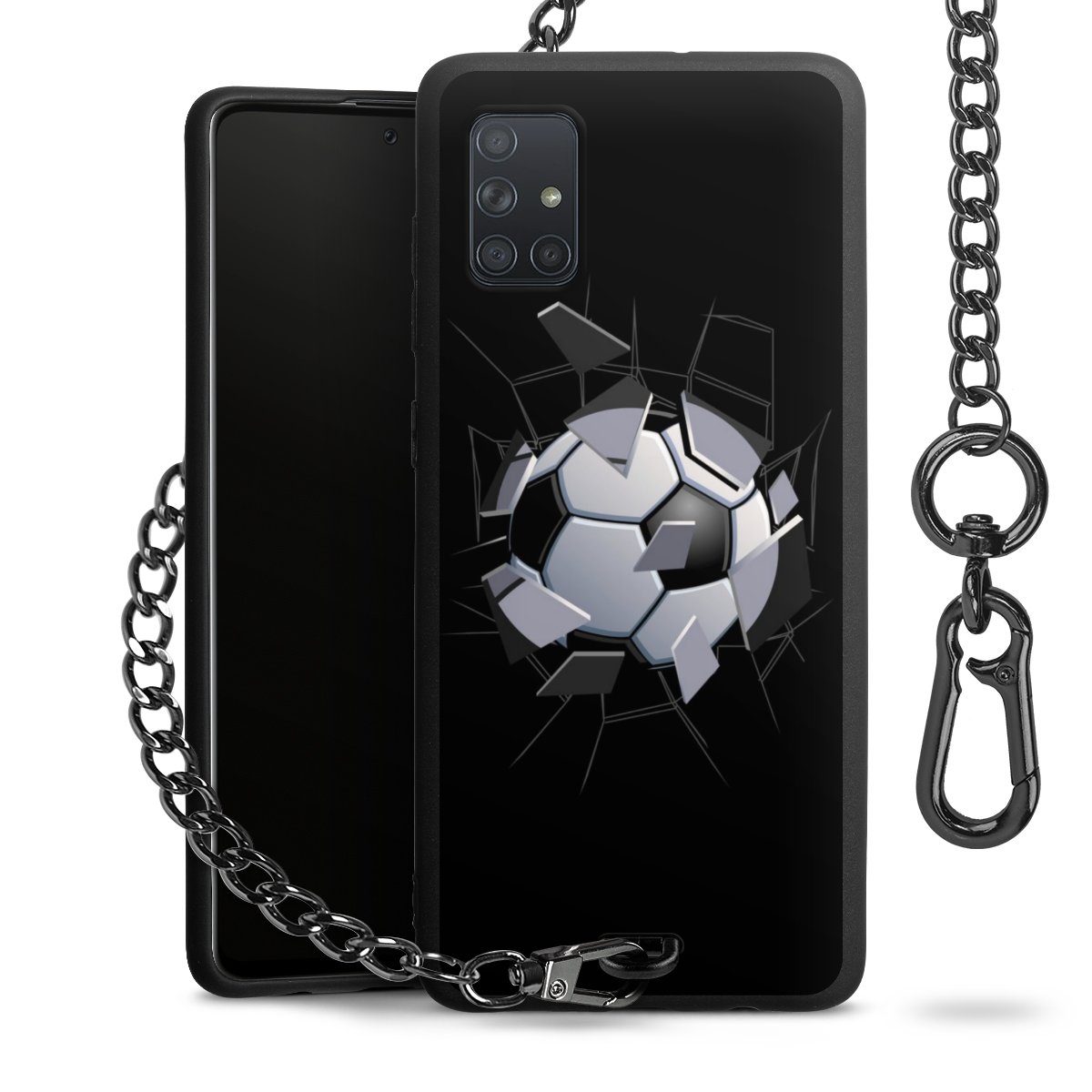 - Mattschwarze Handyhülle mit Metallkette