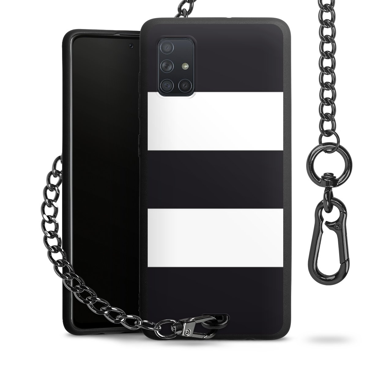 - Mattschwarze Handyhülle mit Metallkette