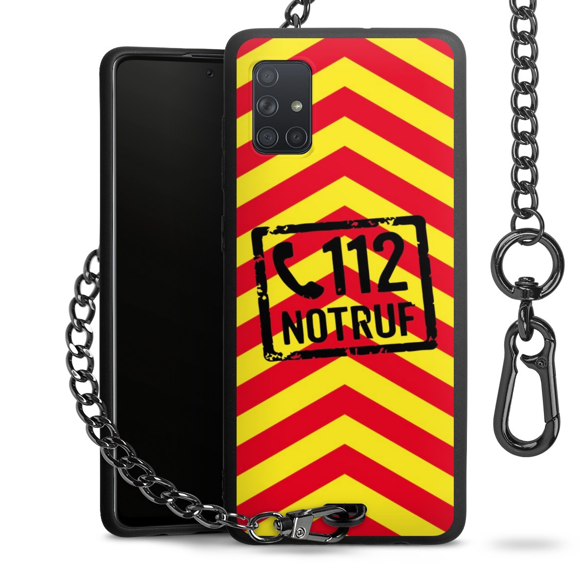 Die mattschwarze Silikon-Handyhülle besteht aus robustem TPU (thermoplastisches Polyurethan). Sie ist flexibel und schützt Dein Smartphone vor Stößen und Kratzern. Die Kette sowie der Karabinerhaken sind aus Metall in Gunmetal-Optik gefertigt. Für dieses Produkt kommen ausschließlich TÜV-geprüfte Materialien zum Einsatz.