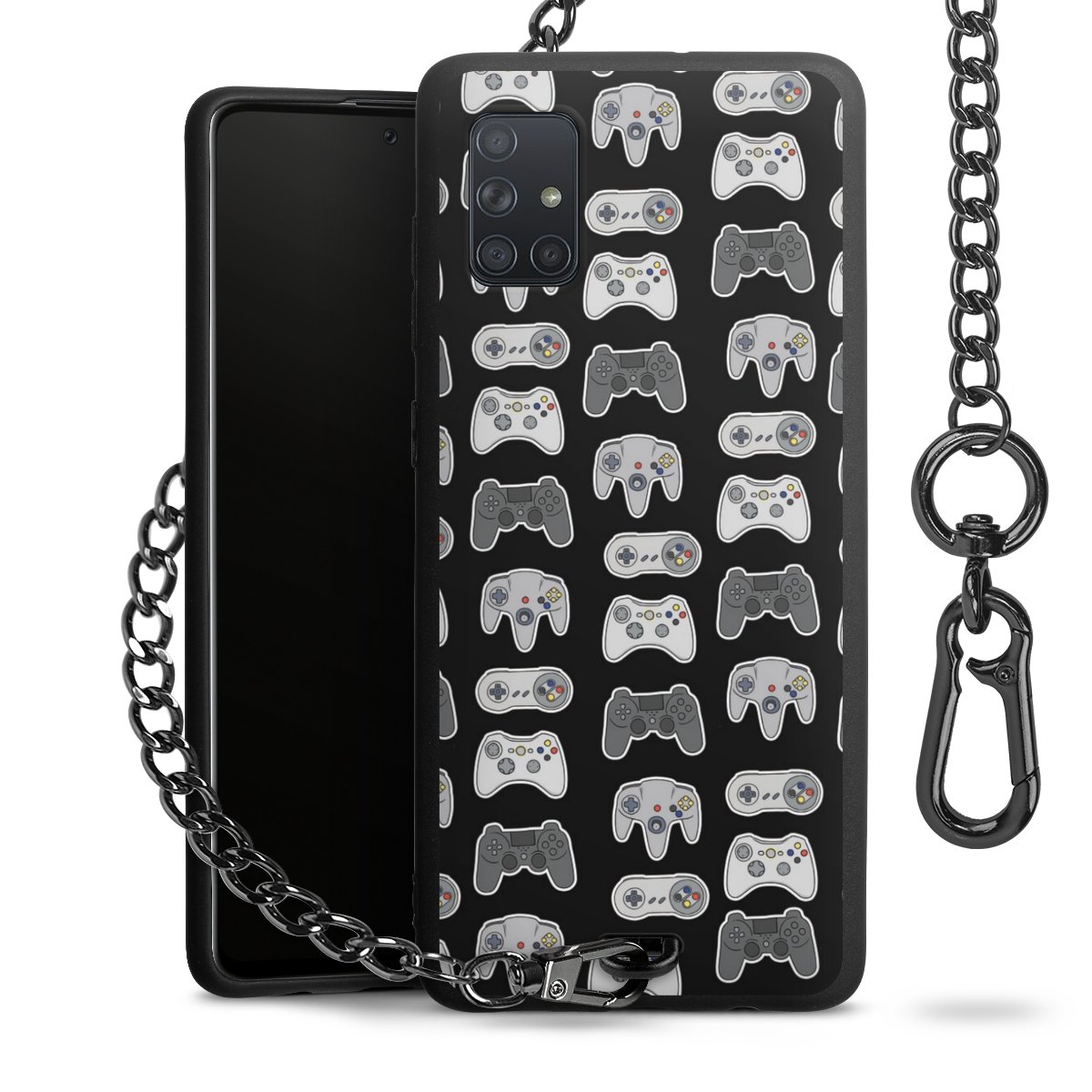 • Mattschwarze Handyhülle mit Metallkette