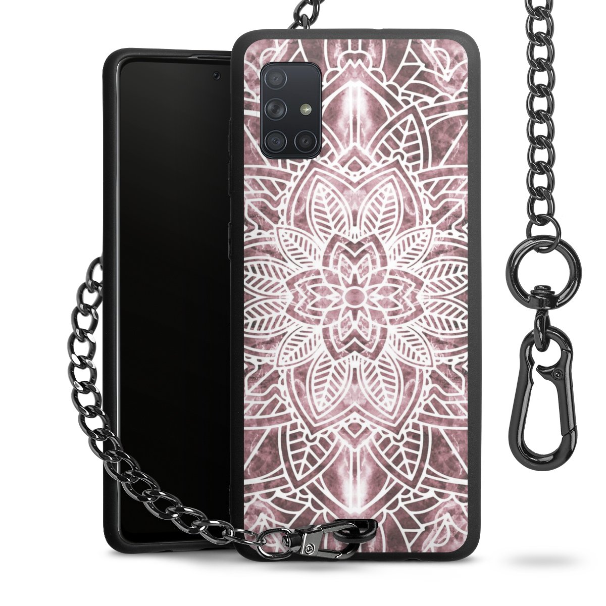 • Mattschwarze Handyhülle mit Metallkette