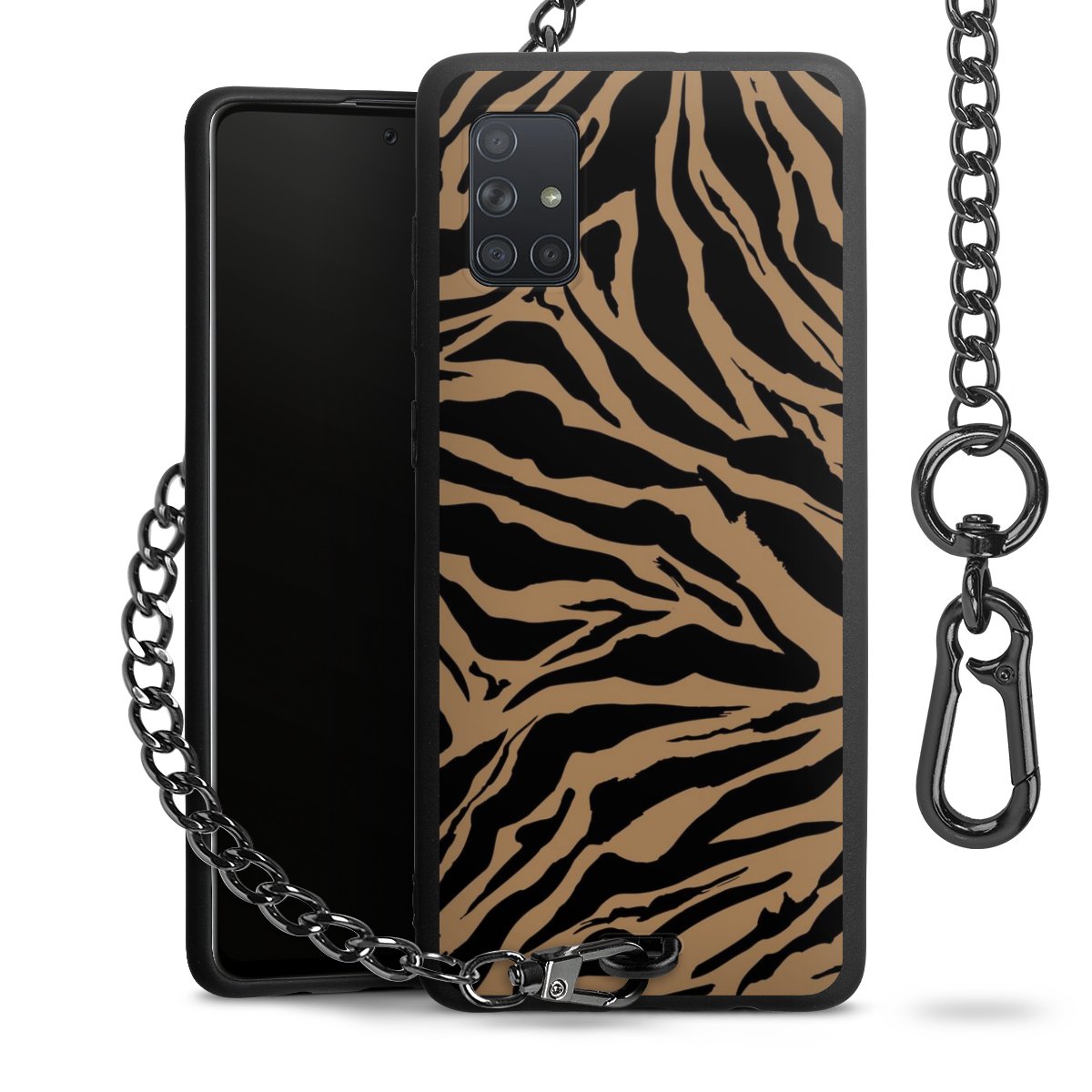 - Mattschwarze Handyhülle mit Metallkette