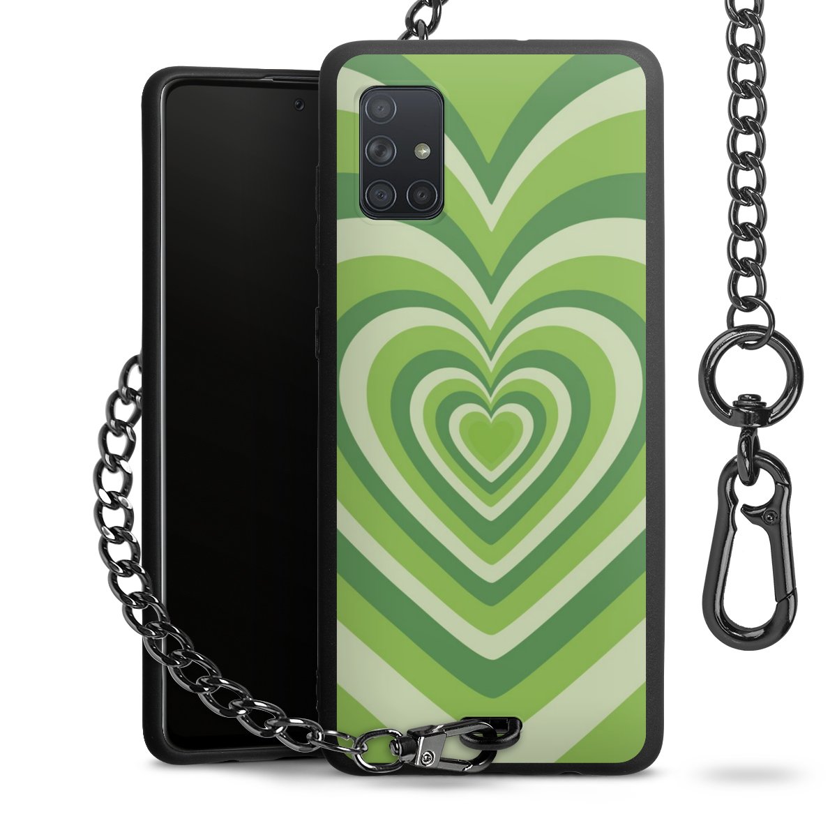 - Mattschwarze Handyhülle mit Metallkette