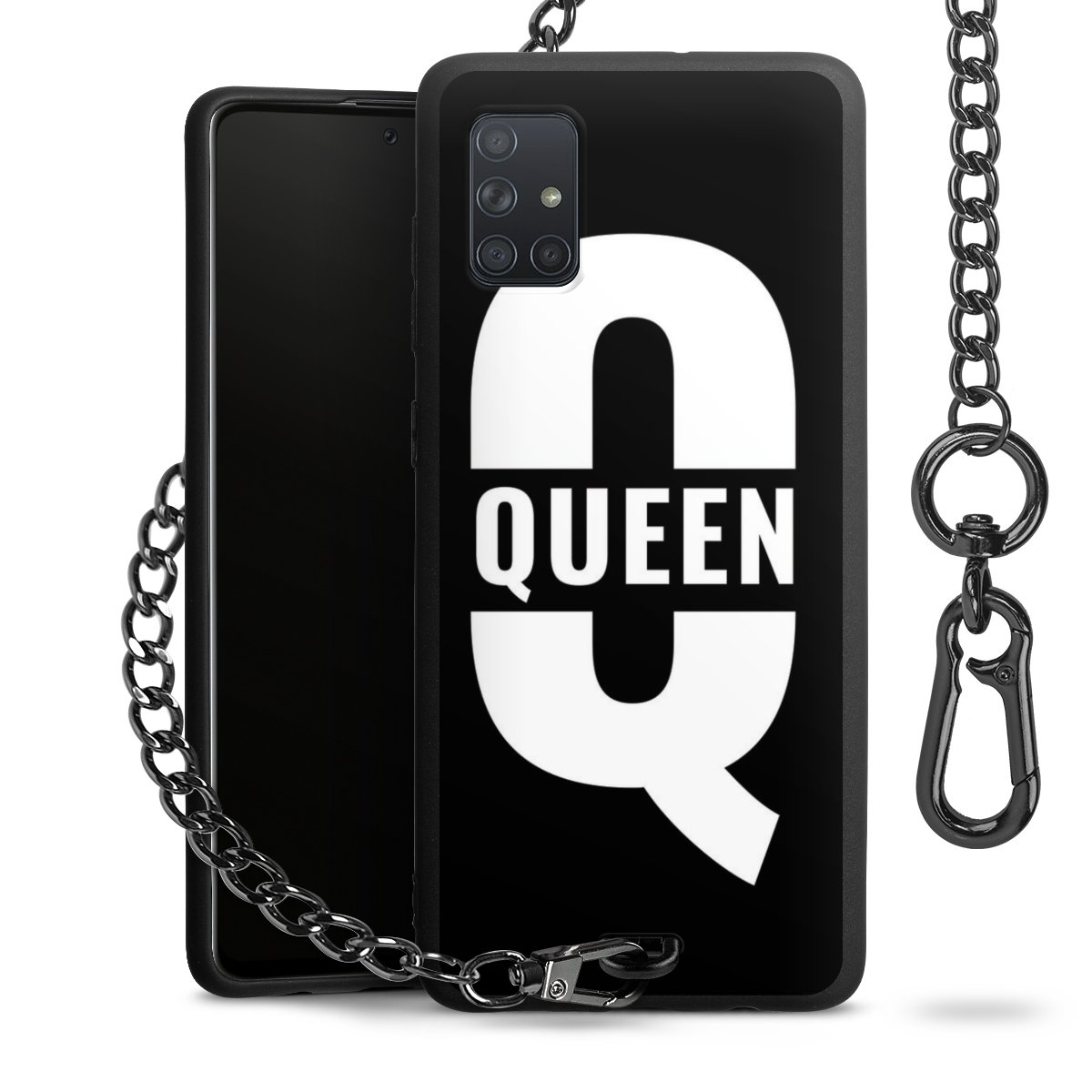 - Mattschwarze Handyhülle mit Metallkette