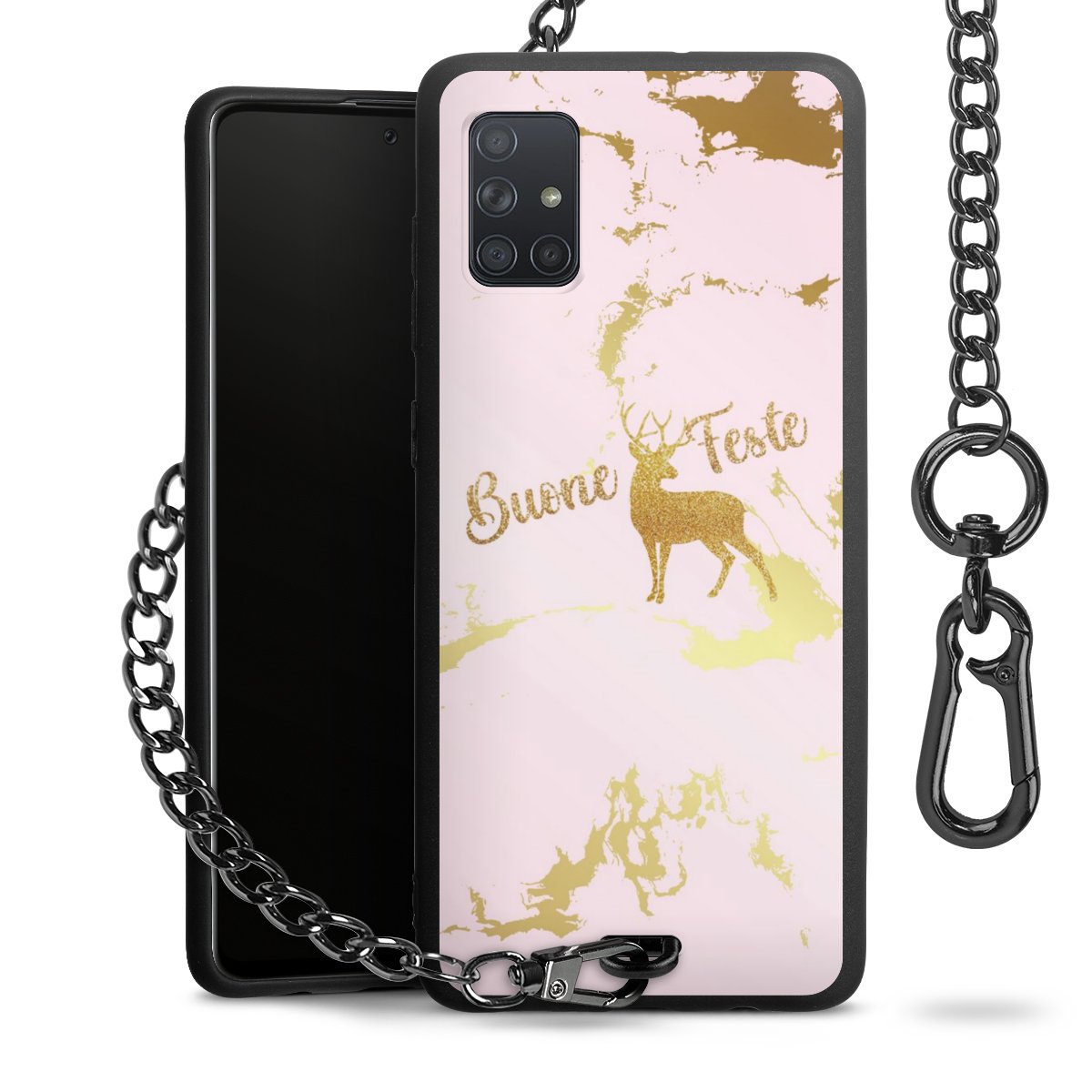 Die mattschwarze Silikon-Handyhülle besteht aus robustem TPU (thermoplastisches Polyurethan). Sie ist flexibel und schützt Dein Smartphone vor Stößen und Kratzern. Die Kette sowie der Karabinerhaken sind aus Metall in Gunmetal-Optik gefertigt. Für dieses Produkt kommen ausschließlich TÜV-geprüfte Materialien zum Einsatz.