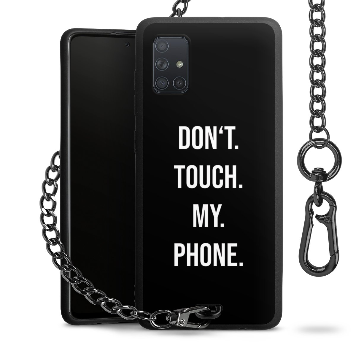 Die mattschwarze Silikon-Handyhülle besteht aus robustem TPU (thermoplastisches Polyurethan). Sie ist flexibel und schützt Dein Smartphone vor Stößen und Kratzern. Die Kette sowie der Karabinerhaken sind aus Metall in Gunmetal-Optik gefertigt. Für dieses Produkt kommen ausschließlich TÜV-geprüfte Materialien zum Einsatz.