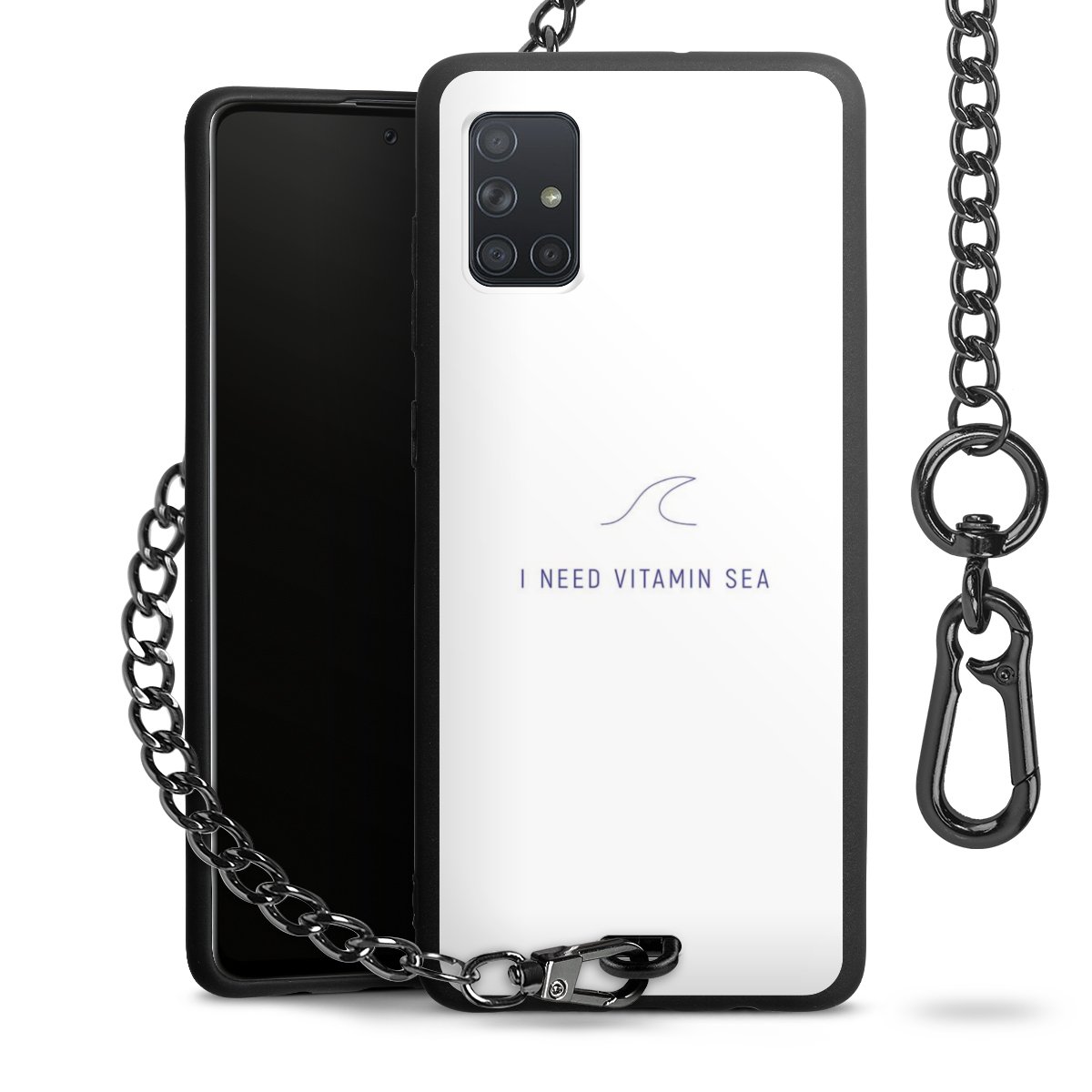 Die mattschwarze Silikon-Handyhülle besteht aus robustem TPU (thermoplastisches Polyurethan). Sie ist flexibel und schützt Dein Smartphone vor Stößen und Kratzern. Die Kette sowie der Karabinerhaken sind aus Metall in Gunmetal-Optik gefertigt. Für dieses Produkt kommen ausschließlich TÜV-geprüfte Materialien zum Einsatz.