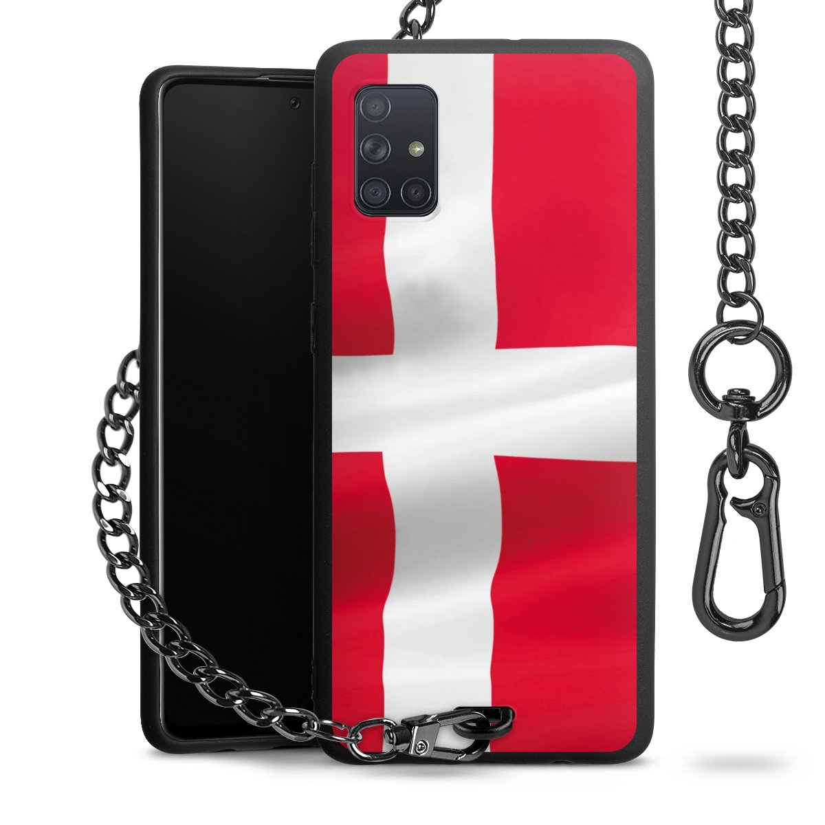 Die mattschwarze Silikon-Handyhülle besteht aus robustem TPU (thermoplastisches Polyurethan). Sie ist flexibel und schützt Dein Smartphone vor Stößen und Kratzern. Die Kette sowie der Karabinerhaken sind aus Metall in Gunmetal-Optik gefertigt. Für dieses Produkt kommen ausschließlich TÜV-geprüfte Materialien zum Einsatz.