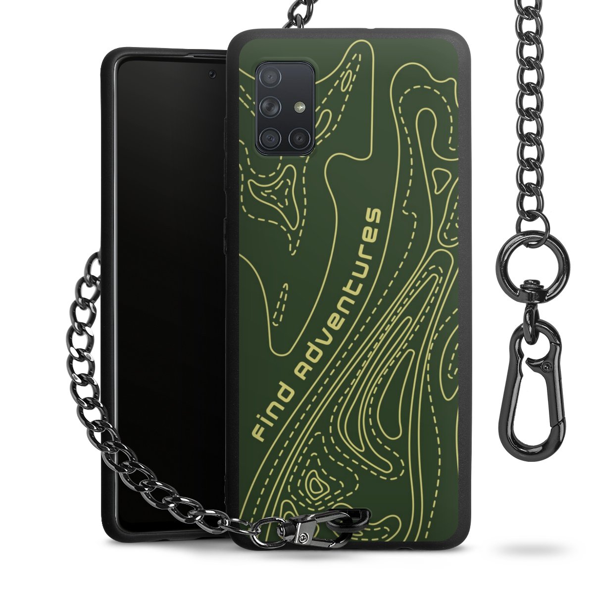 Die mattschwarze Silikon-Handyhülle besteht aus robustem TPU (thermoplastisches Polyurethan). Sie ist flexibel und schützt Dein Smartphone vor Stößen und Kratzern. Die Kette sowie der Karabinerhaken sind aus Metall in Gunmetal-Optik gefertigt. Für dieses Produkt kommen ausschließlich TÜV-geprüfte Materialien zum Einsatz.