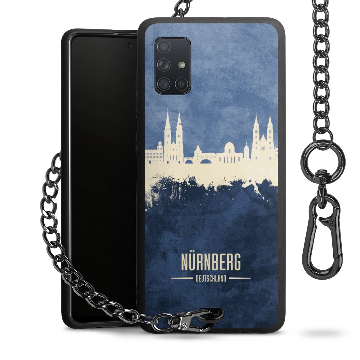 Die mattschwarze Silikon-Handyhülle besteht aus robustem TPU (thermoplastisches Polyurethan). Sie ist flexibel und schützt Dein Smartphone vor Stößen und Kratzern. Die Kette sowie der Karabinerhaken sind aus Metall in Gunmetal-Optik gefertigt. Für dieses Produkt kommen ausschließlich TÜV-geprüfte Materialien zum Einsatz.