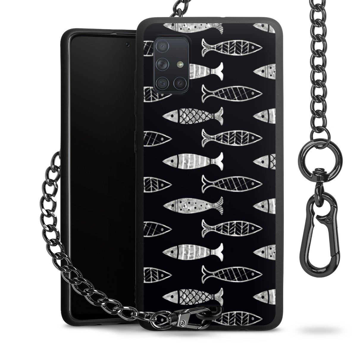 • Mattschwarze Handyhülle mit Metallkette