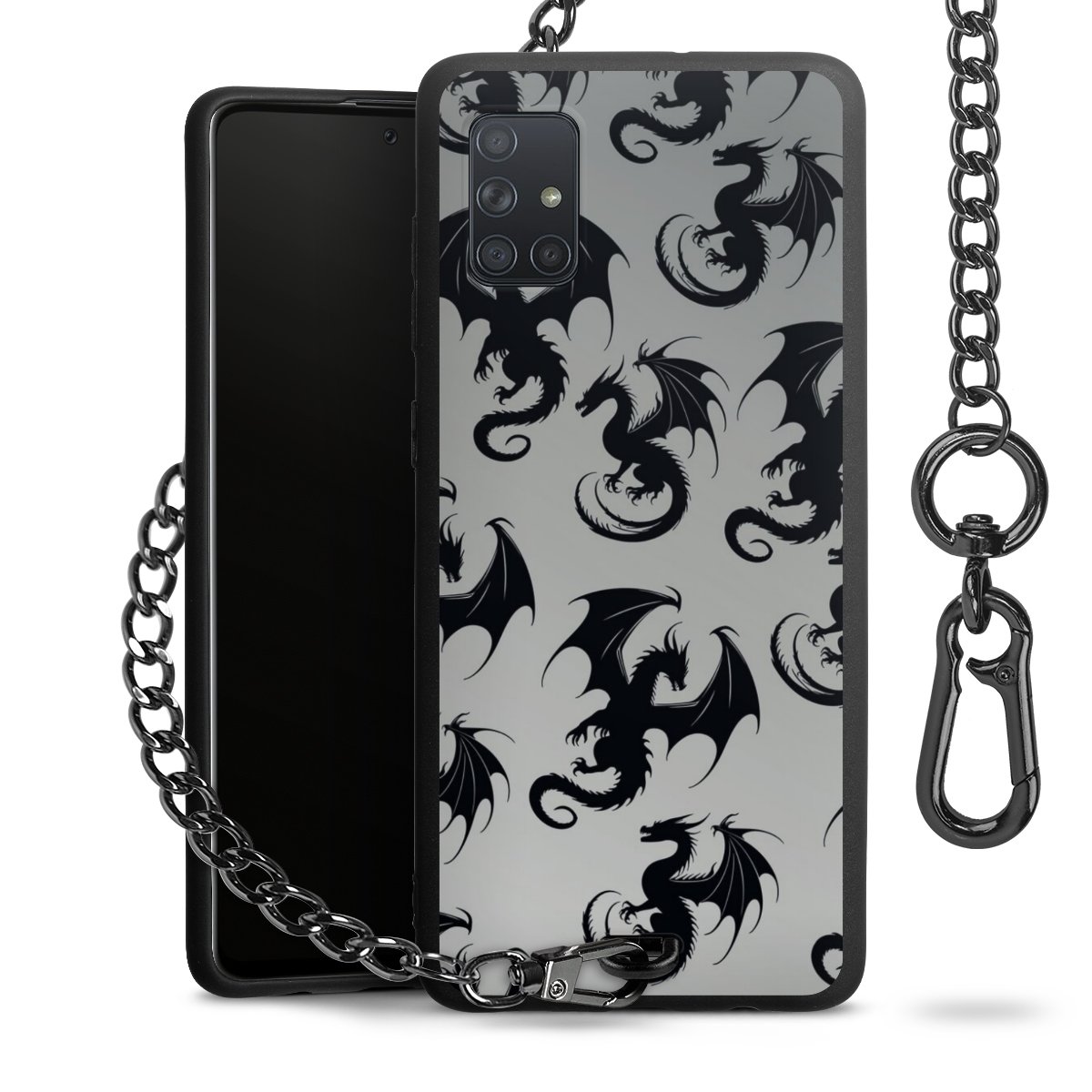 • Mattschwarze Handyhülle mit Metallkette