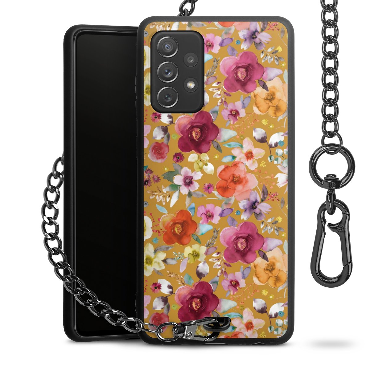 • Mattschwarze Handyhülle mit Metallkette