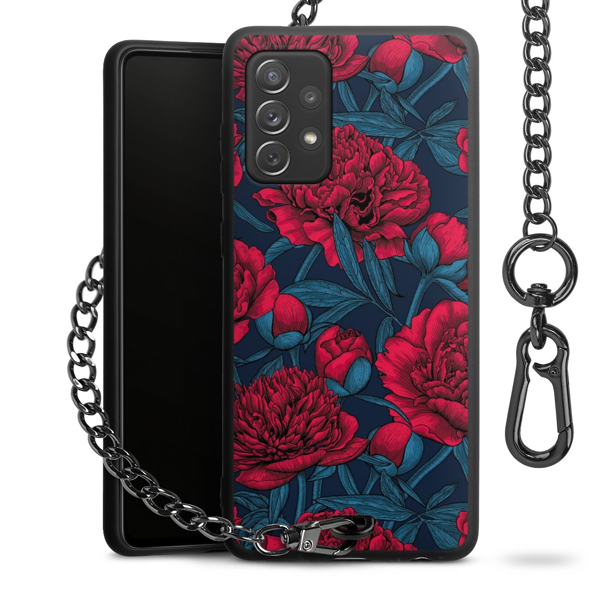 • Mattschwarze Handyhülle mit Metallkette