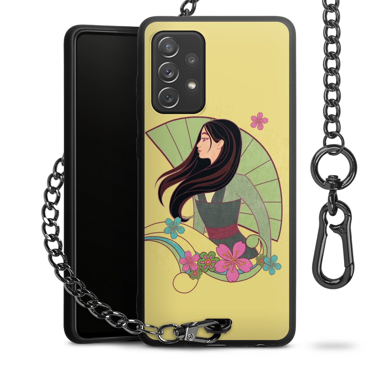 • Mattschwarze Handyhülle mit Metallkette