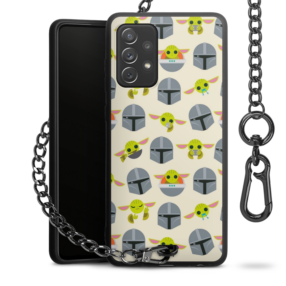 Die mattschwarze Silikon-Handyhülle besteht aus robustem TPU (thermoplastisches Polyurethan). Sie ist flexibel und schützt Dein Smartphone vor Stößen und Kratzern. Die Kette sowie der Karabinerhaken sind aus Metall in Gunmetal-Optik gefertigt. Für dieses Produkt kommen ausschließlich TÜV-geprüfte Materialien zum Einsatz.
