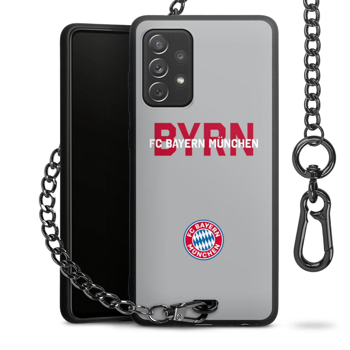 • Mattschwarze Handyhülle mit Metallkette