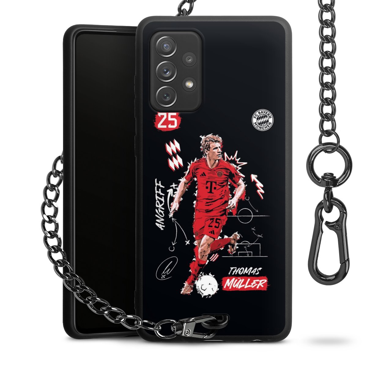 • Mattschwarze Handyhülle mit Metallkette