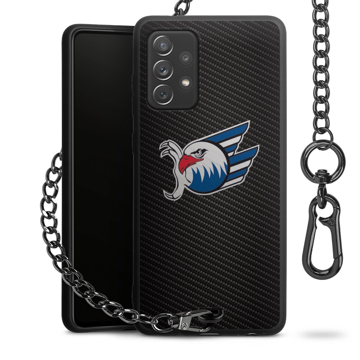 • Mattschwarze Handyhülle mit Metallkette